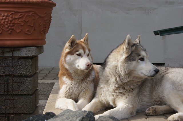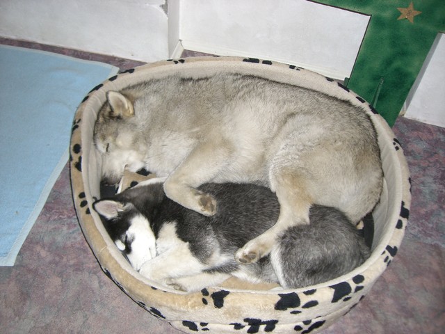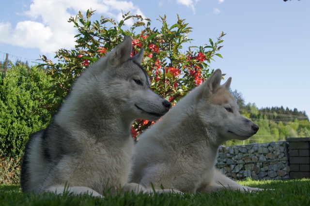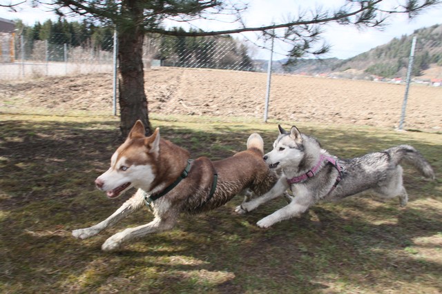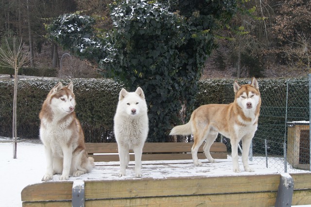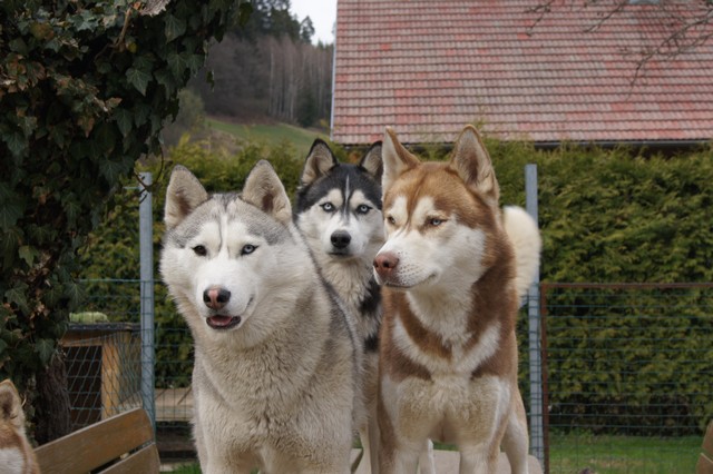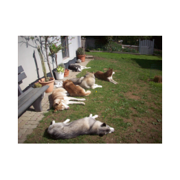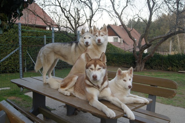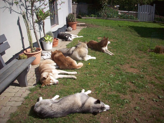 Wir sind ein vierzehn-köpfiges, eingeschweißtes Husky Rudel, das nichts und niemand so schnell unterkriegt..... :-)Mausklick für größere Ansicht
