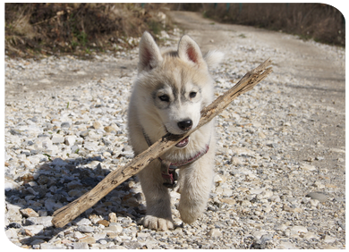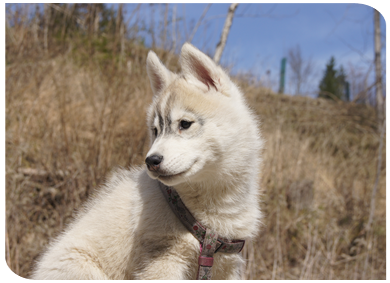Bei Abgabe kennen unsere Welpen bereits Halsband, Brustgeschirr und Leine, hören auch schon auf den zukünftigen Rufnamen und sind so gut es geht stubenrein.